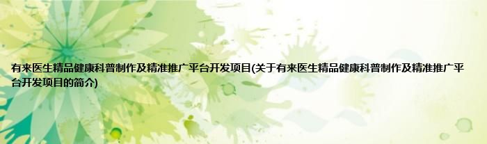 本文关于有来医生精品健康科普制作及精准推广平台开发项目的简介就讲解完毕,希望对大家有所帮助。