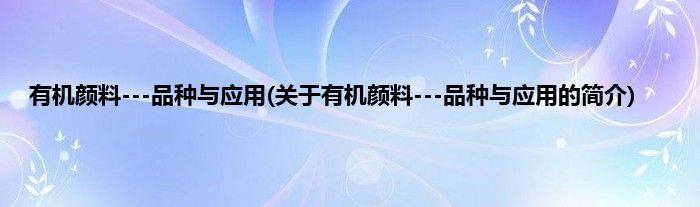 本文关于有机颜料---品种与应用的简介就讲解完毕,希望对大家有所帮助。