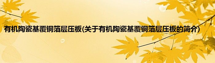 本文关于有机陶瓷基覆铜箔层压板的简介就讲解完毕,希望对大家有所帮助。