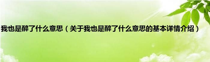 本文关于我也是醉了什么意思的基本详情介绍就讲解完毕,希望对大家有所帮助。