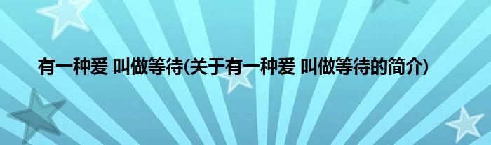 大家好,有一种爱,叫做等待,关于有一种爱,叫做等待的简介很多人还不知道,现在让我们一起来看看吧!