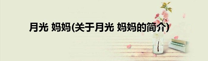 大家好,月光 妈妈,关于月光 妈妈的简介很多人还不知道,现在让我们一起来看看吧!