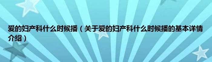 本文关于爱的妇产科什么时候播的基本详情介绍就讲解完毕,希望对大家有所帮助。