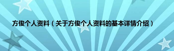 本文关于方俊个人资料的基本详情介绍就讲解完毕,希望对大家有所帮助。