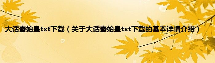 本文关于大话秦始皇txt下载的基本详情介绍就讲解完毕,希望对大家有所帮助。