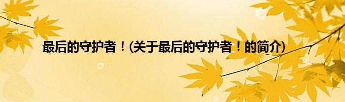 大家好,最后的守护者!,关于最后的守护者!的简介很多人还不知道,现在让我们一起来看看吧!