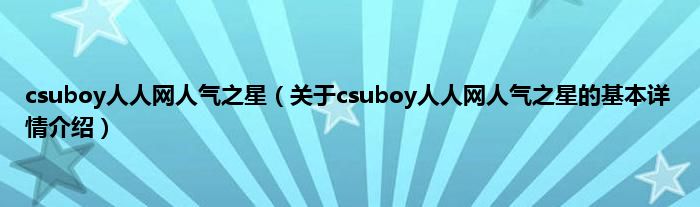 csuboy人人网人气之星(关于csuboy人人网人气之星的基本详情介绍)