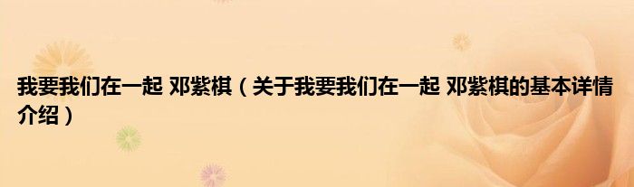 我要我们在一起 邓紫棋(关于我要我们在一起 邓紫棋的基本详情介绍)