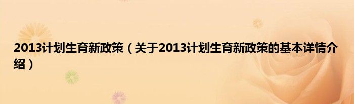 本文关于2013计划生育新政策的基本详情介绍就讲解完毕,希望对大家有所帮助。