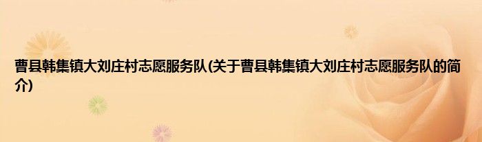 曹县韩集镇大刘庄村志愿服务队(关于曹县韩集镇大刘庄村志愿服务队的简介)