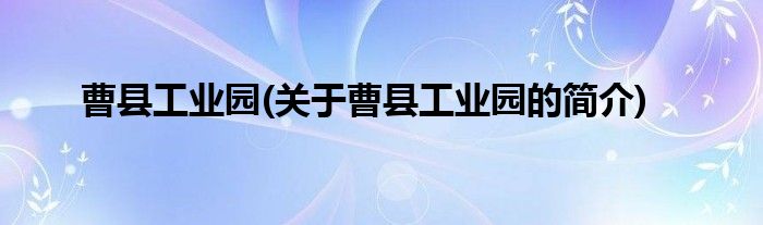 本文关于曹县工业园的简介就讲解完毕,希望对大家有所帮助。