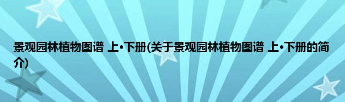 本文关于景观园林植物图谱 上·下册的简介就讲解完毕,希望对大家有所帮助。
