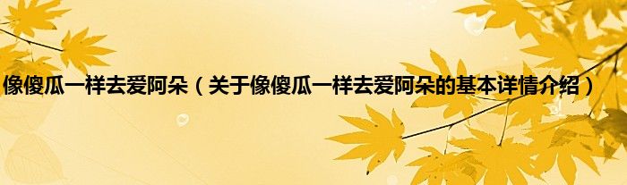 本文关于像傻瓜一样去爱阿朵的基本详情介绍就讲解完毕,希望对大家有所帮助。