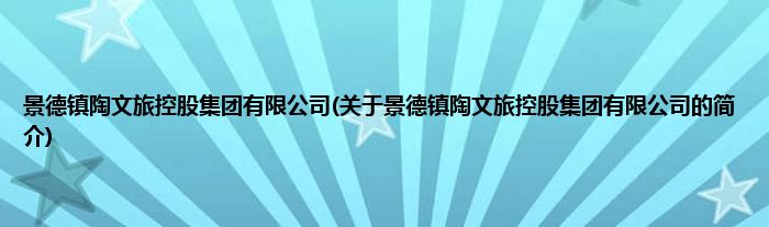 本文关于景德镇陶文旅控股集团有限公司的简介就讲解完毕,希望对大家有所帮助。