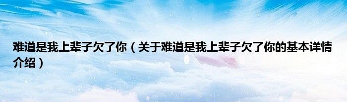 本文关于难道是我上辈子欠了你的基本详情介绍就讲解完毕,希望对大家有所帮助。