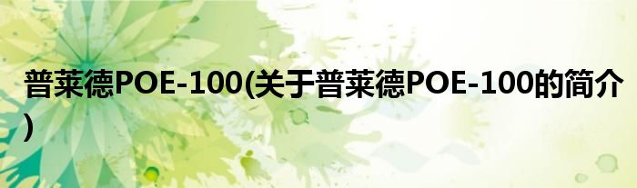 本文关于普莱德POE-100的简介就讲解完毕,希望对大家有所帮助。