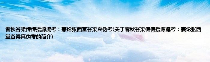本文关于春秋谷梁传传授源流考:兼论张西堂谷梁真伪考的简介就讲解完毕,希望对大家有所帮助。