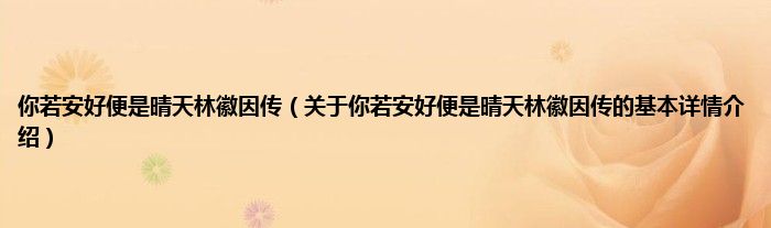 本文关于你若安好便是晴天林徽因传的基本详情介绍就讲解完毕,希望对大家有所帮助。