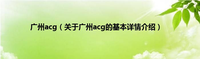 广州acg(关于广州acg的基本详情介绍)