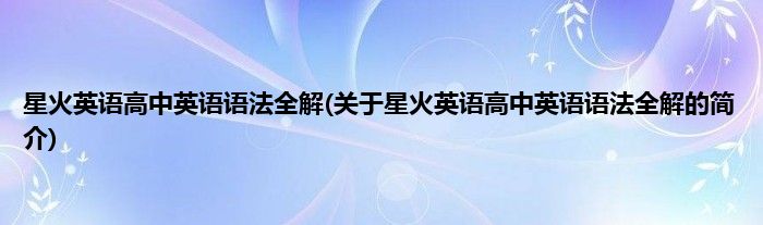 本文关于星火英语高中英语语法全解的简介就讲解完毕,希望对大家有所帮助。