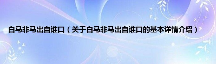本文关于白马非马出自谁口的基本详情介绍就讲解完毕,希望对大家有所帮助。