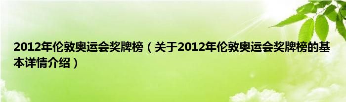 本文关于2012年伦敦奥运会奖牌榜的基本详情介绍就讲解完毕,希望对大家有所帮助。