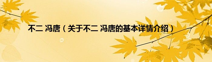 本文关于不二 冯唐的基本详情介绍就讲解完毕,希望对大家有所帮助。