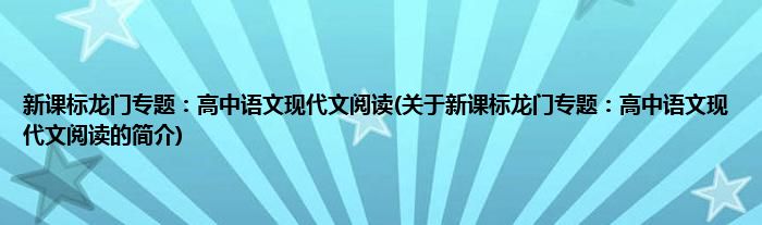 新课标龙门专题:高中语文现代文阅读(关于新课标龙门专题:高中语文现代文阅读的简介)