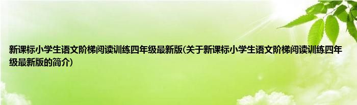 本文关于新课标小学生语文阶梯阅读训练四年级最新版的简介就讲解完毕,希望对大家有所帮助。