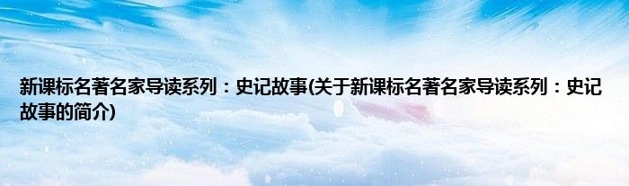 本文关于新课标名著名家导读系列:史记故事的简介就讲解完毕,希望对大家有所帮助。