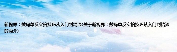本文关于新视界:数码单反实拍技巧从入门到精通的简介就讲解完毕,希望对大家有所帮助。