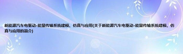 大家好,新能源汽车电驱动-能量传输系统建模、仿真与应用,关于新能源汽车电驱动-能量传输系统建模、仿真与应用的简介很多人还不知道,现在让我们一起来看看吧!