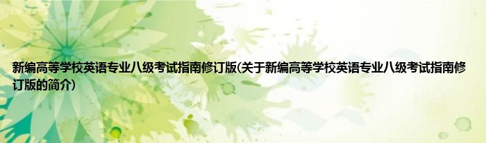 1、 《新编高等学校英语专业八级考试指南修订版》是2008年上海外语教育出版社出版的图书。