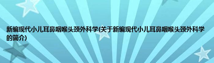 本文关于新编现代小儿耳鼻咽喉头颈外科学的简介就讲解完毕,希望对大家有所帮助。