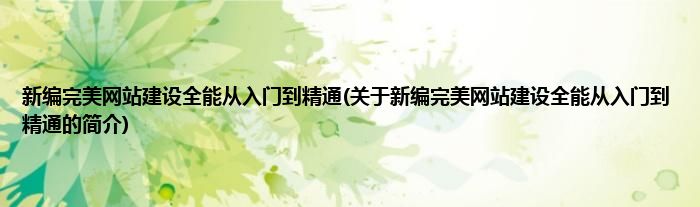 大家好,新编完美网站建设全能从入门到精通,关于新编完美网站建设全能从入门到精通的简介很多人还不知道,现在让我们一起来看看吧!