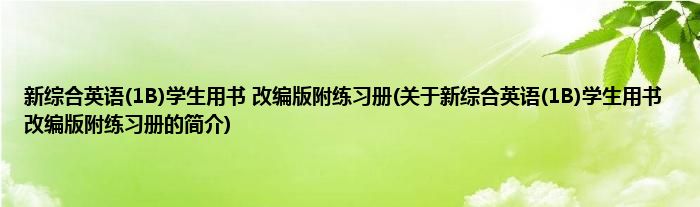 本文关于新综合英语(1B)学生用书 改编版附练习册的简介就讲解完毕,希望对大家有所帮助。