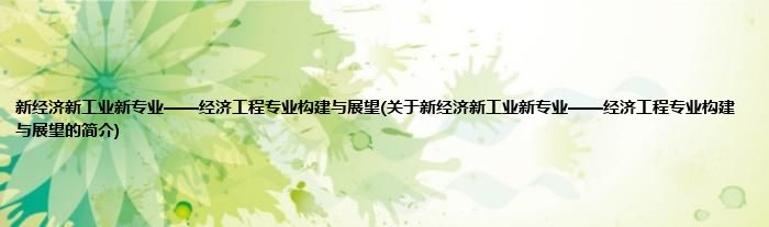 本文关于新经济新工业新专业——经济工程专业构建与展望的简介就讲解完毕,希望对大家有所帮助。