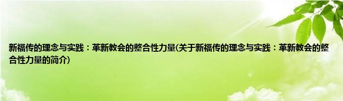 新福传的理念与实践:革新教会的整合性力量(关于新福传的理念与实践:革新教会的整合...