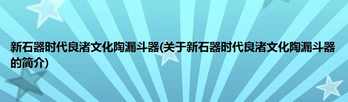 新石器时代良渚文化陶漏斗器(关于新石器时代良渚文化陶漏斗器的简介)