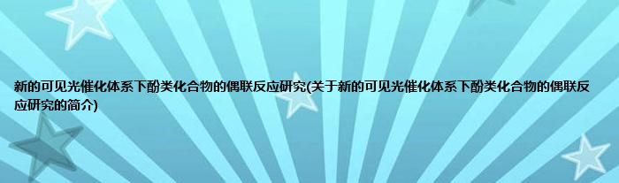 本文关于新的可见光催化体系下酚类化合物的偶联反应研究的简介就讲解完毕,希望对大家有所帮助。
