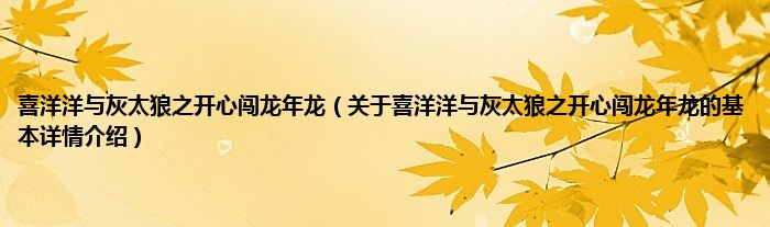 本文关于喜洋洋与灰太狼之开心闯龙年龙的基本详情介绍就讲解完毕,希望对大家有所帮助。