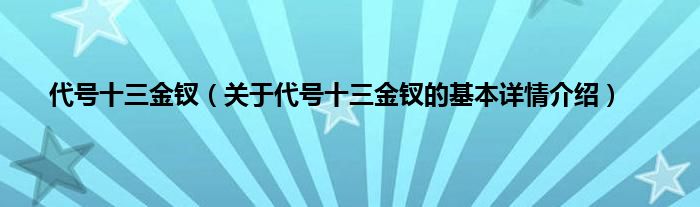 本文关于代号十三金钗的基本详情介绍就讲解完毕,希望对大家有所帮助。