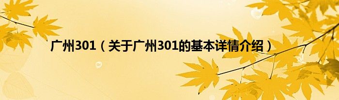 广州301(关于广州301的基本详情介绍)
