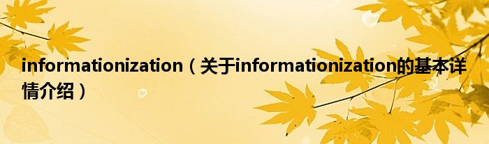 本文关于informationization的基本详情介绍就讲解完毕,希望对大家有所帮助。