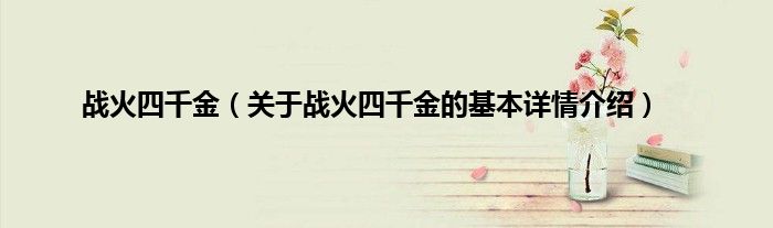 本文关于战火四千金的基本详情介绍就讲解完毕,希望对大家有所帮助。