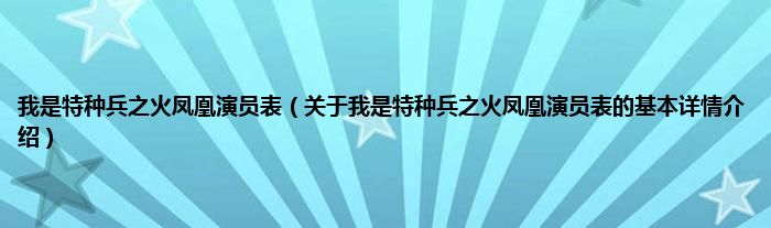 本文关于我是特种兵之火凤凰演员表的基本详情介绍就讲解完毕,希望对大家有所帮助。