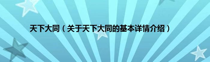 本文关于天下大同的基本详情介绍就讲解完毕,希望对大家有所帮助。