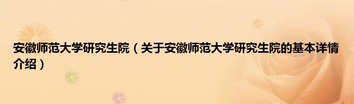 本文关于安徽师范大学研究生院的基本详情介绍就讲解完毕,希望对大家有所帮助。