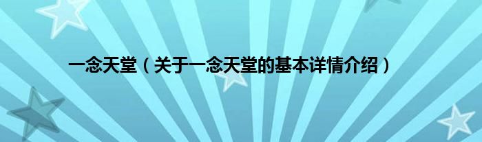 本文关于一念天堂的基本详情介绍就讲解完毕,希望对大家有所帮助。
