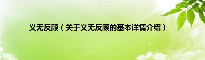 本文关于义无反顾的基本详情介绍就讲解完毕,希望对大家有所帮助。